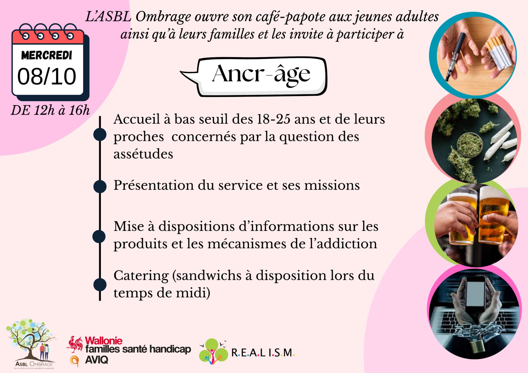 Accueil à bas seuil spécifique aux jeunes à l’ASBL Ombrage – Mercredi 8 octobre 2025, en collaboration avec le réseau Réalsim. Initiative dans le cadre de la semaine de la santé mentale.