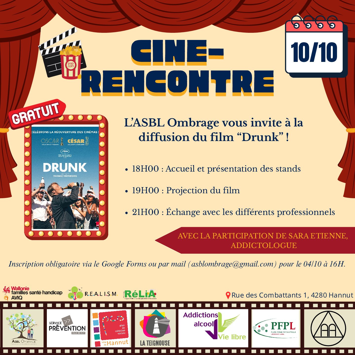 Ciné-rencontre sur la thématique de l’alcool au sein de l’ASBL Ombrage, en collaboration avec le RéLiA zone 4
